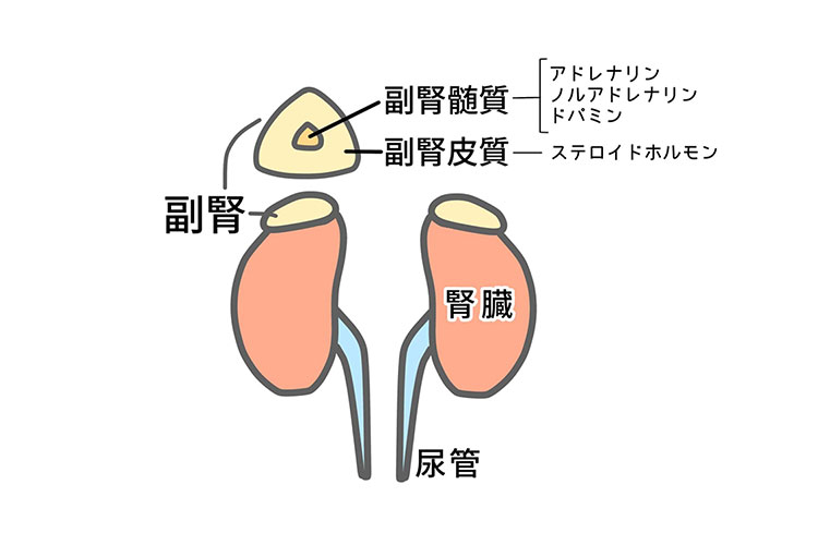 副腎腫瘍は、ホルモンを分泌するかどうかによって症状が異なります。無症状のまま経過することもあります。