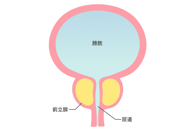 男性の膀胱の下部には、栗の実の形をした前立腺と呼ばれる臓器があり、前立腺液を分泌します。前立腺肥大症は、この臓器が大きくなってしまう病気です。