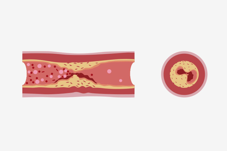 脂質異常症を放置すると、血管の内側にコレステロールが蓄積し、動脈硬化が進行します。