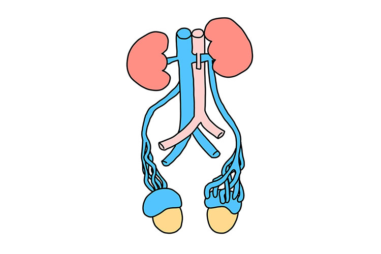 精索静脈瘤が原因となって造精機能障害をきたし、男性不妊の原因となりかねないので、念のため当院を受診し、造影CTによる診断を受けるようにしてください。